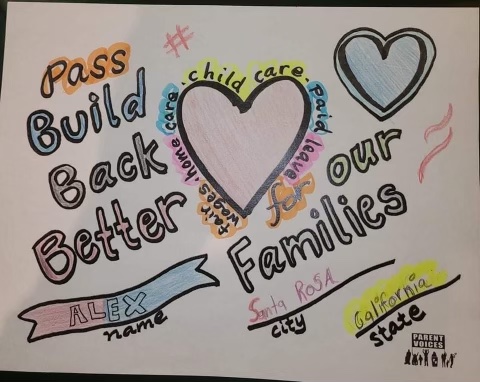 Let’s get coloring for Build Back Better! Use these downloadable and printable pages to color with your family, friends, kids, and care givers! Finished coloring pages can be mailed to leaders, shared on social media, emailed, faxed–get creative! (You can also email mrosales@parentvoices.org, and we’ll make sure to get your coloring page shared.)